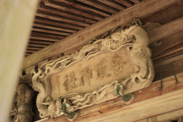 この神社は拝殿の造作も佐倉地区の諏訪神社に次ぐ丁寧さで、社名の額の昇り竜、降り竜の彫刻は他に例を見ない。