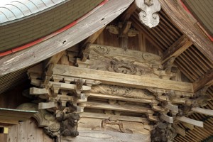 本殿は一間社流造、拝殿は入母屋造平入りで妻飾の虹梁・蟇股・木鼻などは華やかな彫刻で飾られている。天正18年(1590年)には伊達政宗公が相馬遠征の際、当社に戦勝を祈願し、ここで甲冑に着替えて出陣。凱旋時、金幣帛烏帽子及び日色鈴を奉納し社殿を寄進したと伝えられている。